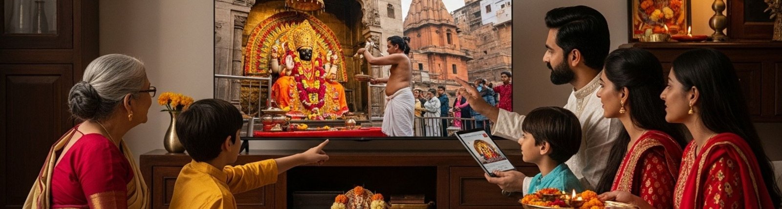 Live-streamed pujas with real-time name and gotra verification.